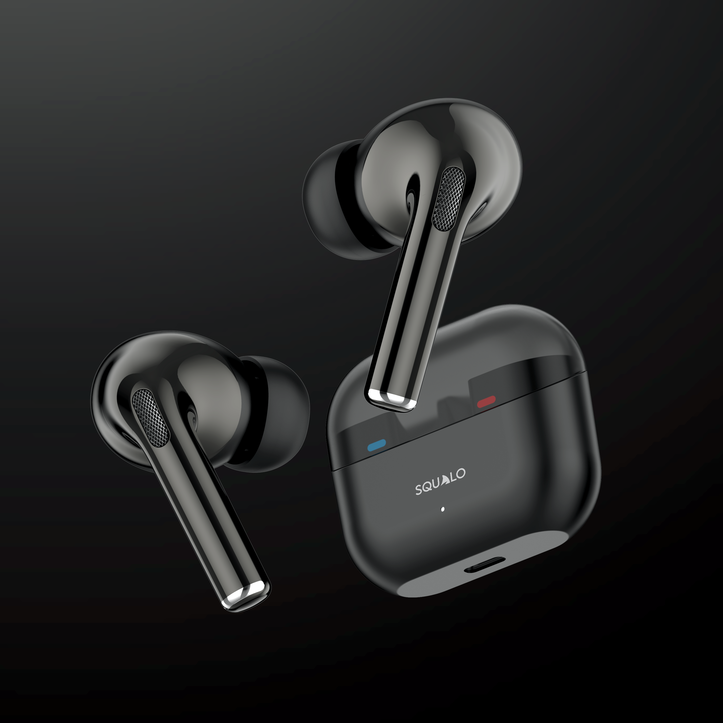 Squalo Onyx Pro Quad Mic TWS with ENC, Premium Chrome Finish , Super Extra Bass, Enhanced Gaming Mode (Made In India)