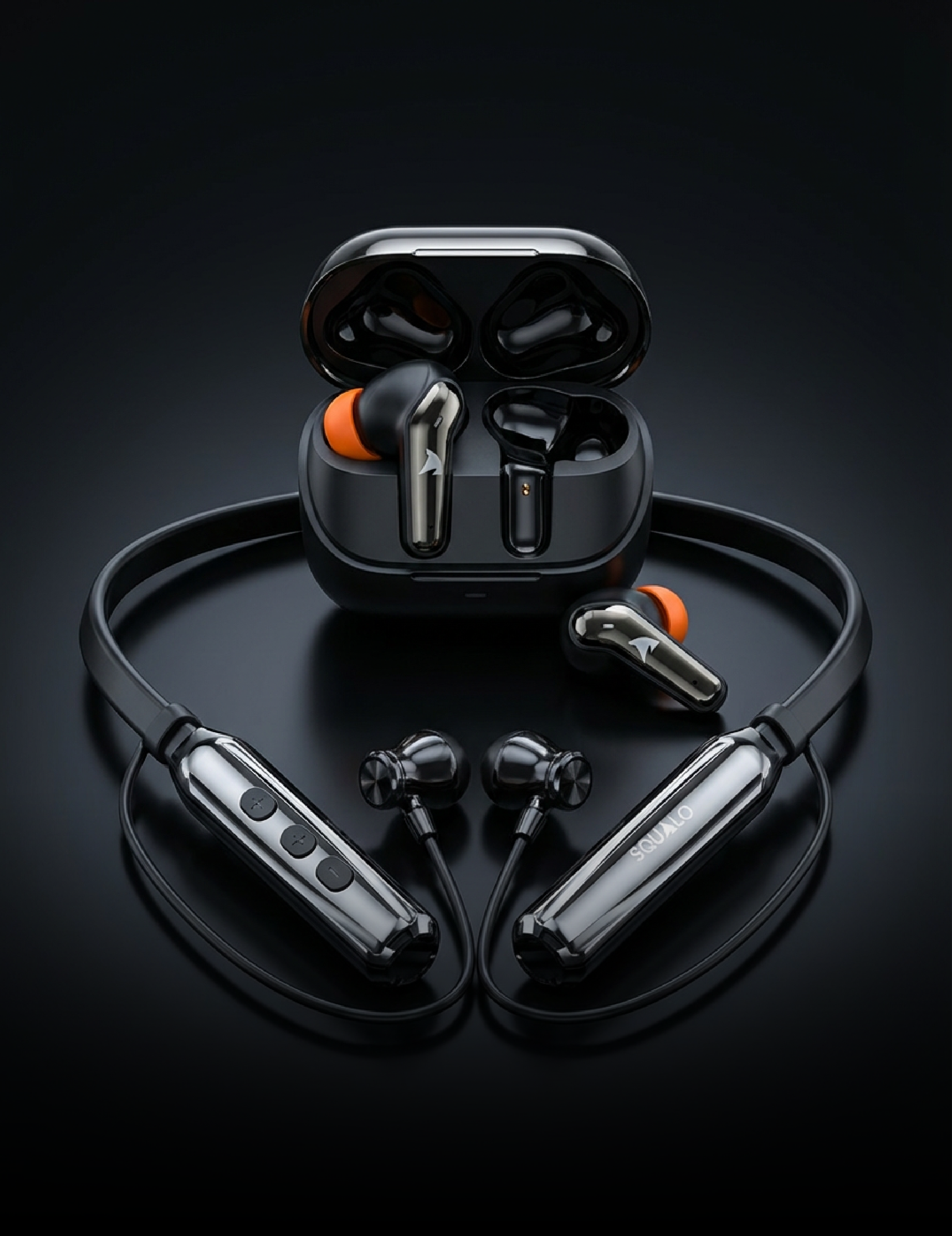 From feature-packed wireless earbuds to rugged neckbands and headphones, Squalo Audio combines strong performance with smart design. And with our 15-month replacement warranty, we ensure peace of mind and confidence in every purchase—because great sound should come with dependable support.